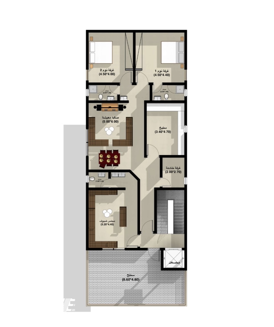مدخل العائلة صاله+ دورة مياه + مطبخ +غرفتين نوم وحداه ماستر